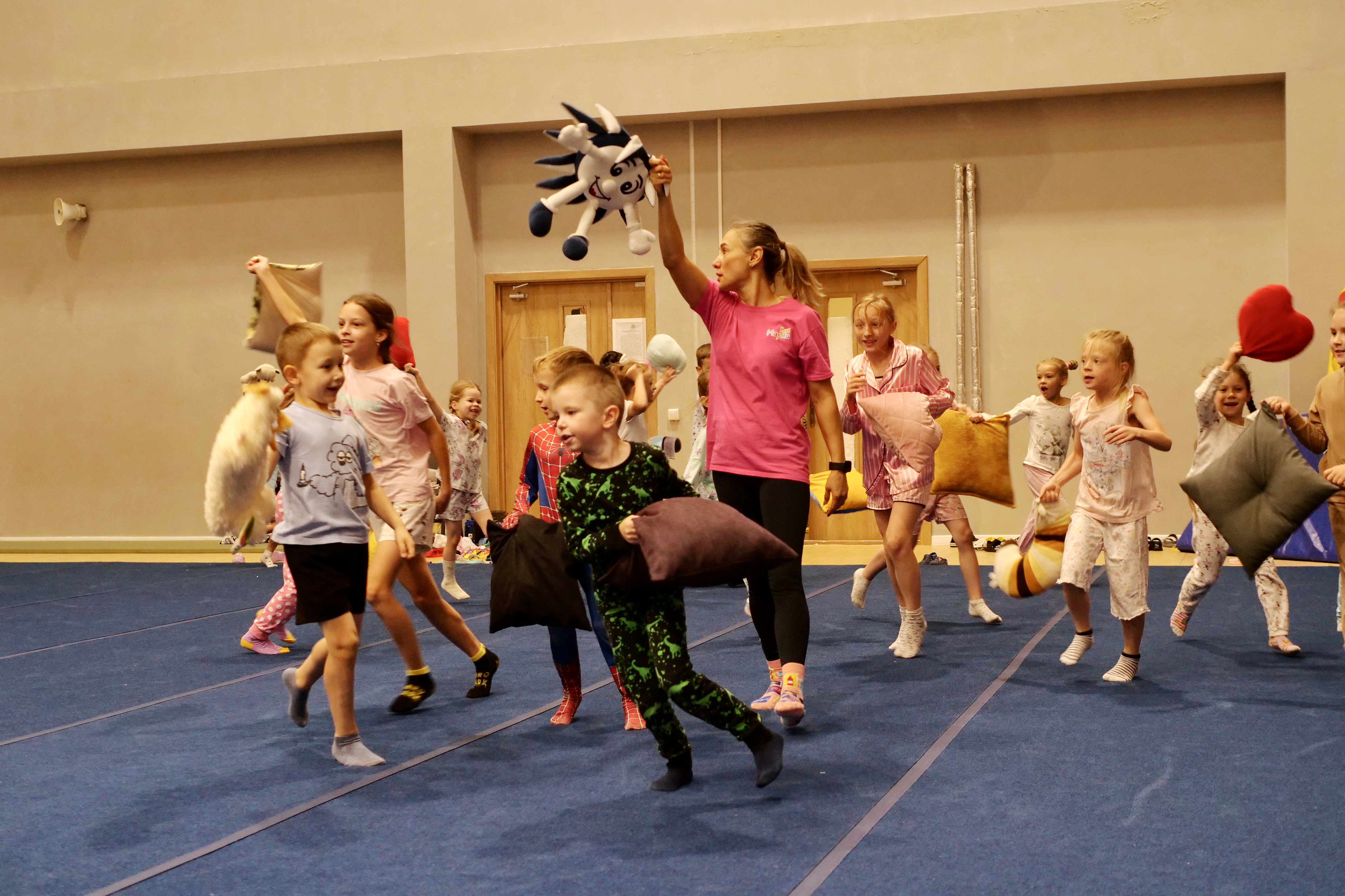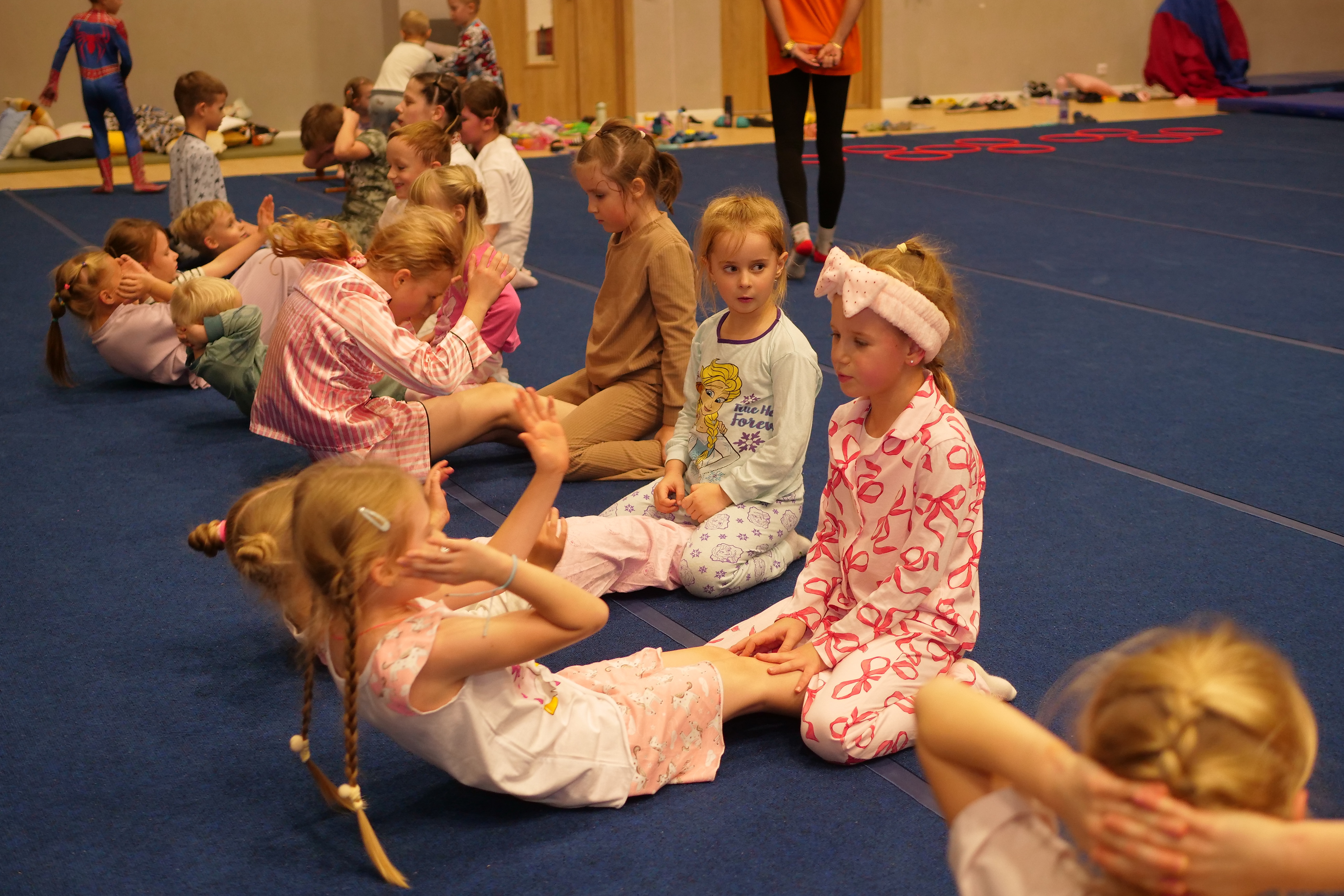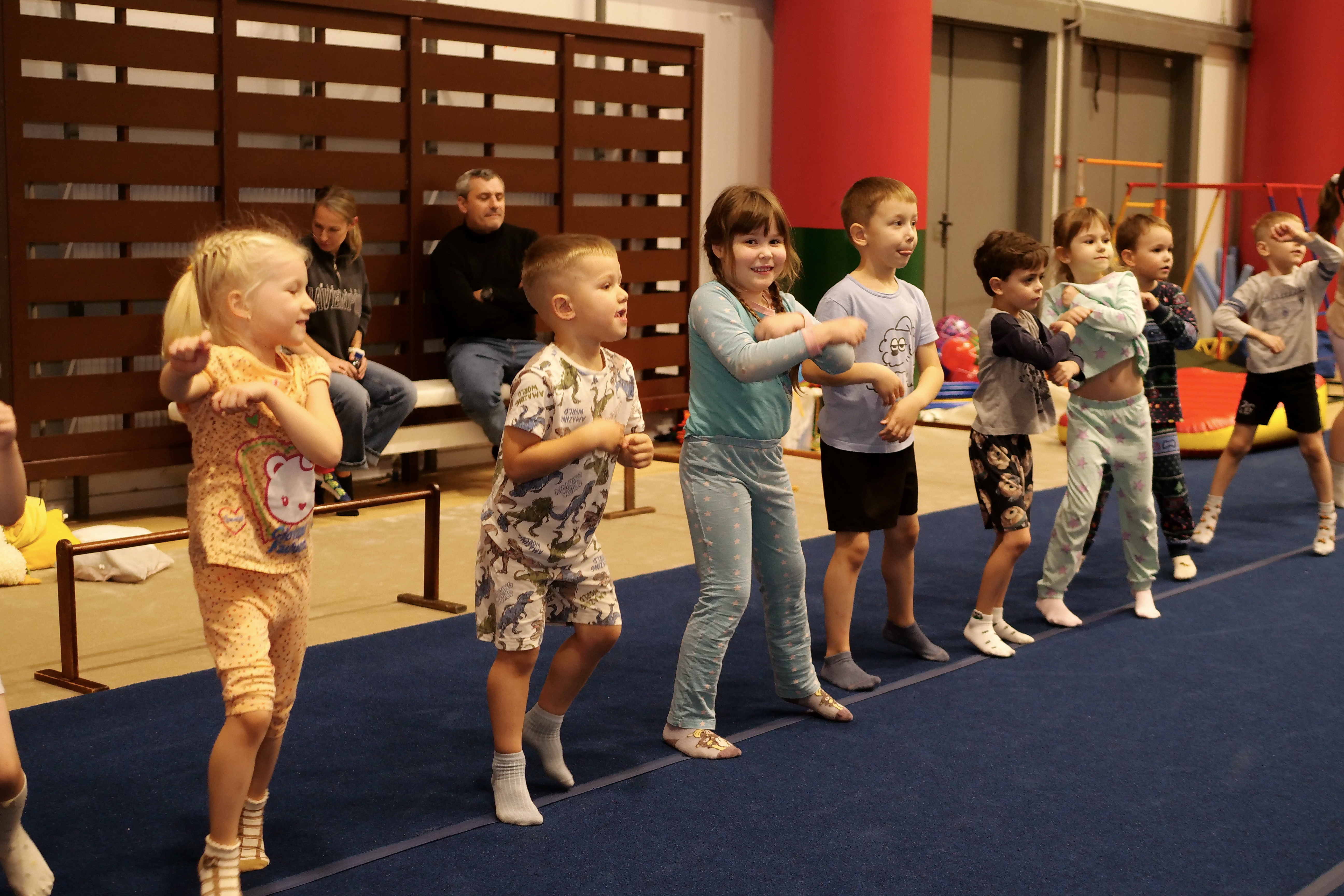 А «Тренировка в пижаме» это уют, смех и ощущение волшебства. Малыши приходят в своих любимых пижамах, а зал превращается в пространство игры и радости, где движение воспринимается легко и естественно.